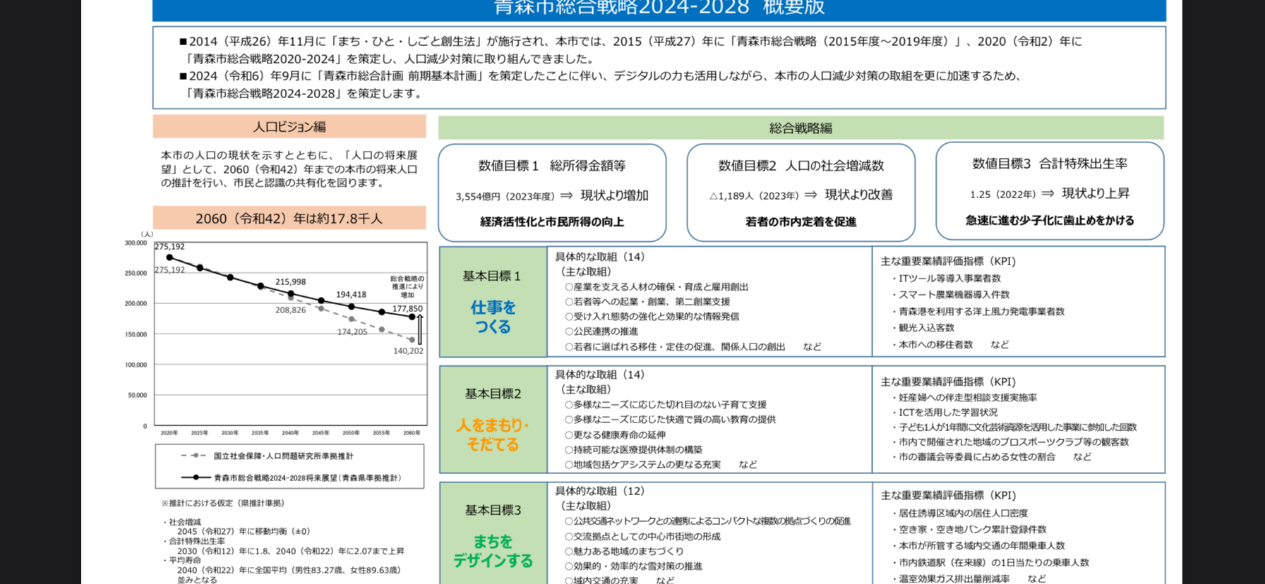 一方、青森市は「総合戦略2024-2028」の策定により、