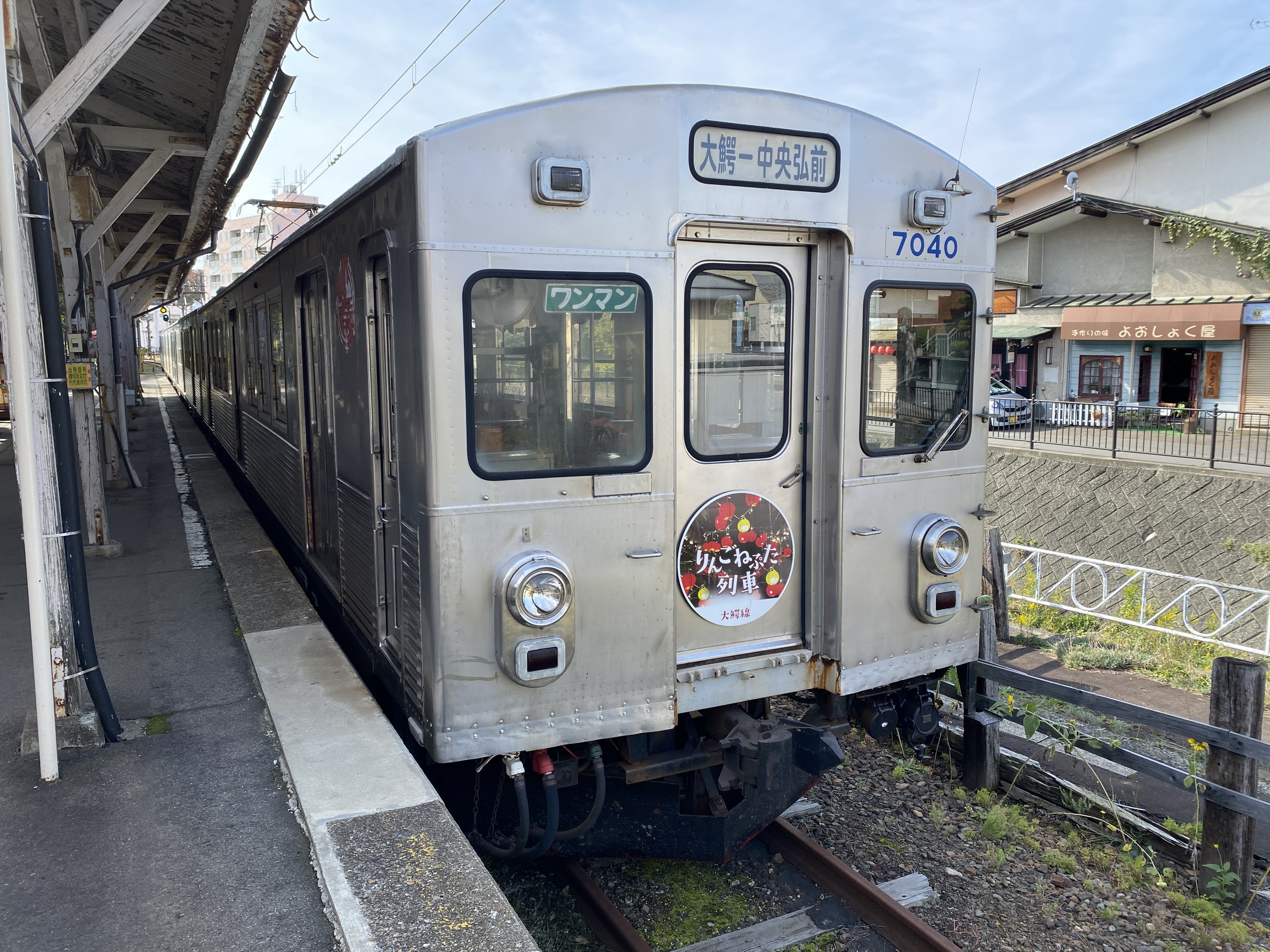 ↑弘南鉄道大鰐線の貴重な4両編成、ホームからはみ出していますw