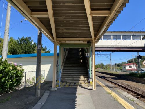 2番線へは跨線橋階段を上る必要があるため、